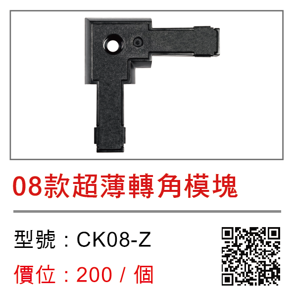 首頁/所有商品/軌道燈系列/【08款】磁吸軌道珠寶燈/08款_導電連接模塊|軌道燈 08款_導電連接模塊|軌道燈NT$200 產品 : 08款_超薄轉角模塊 型號 : CK08-Z 產品 : 08款_超薄直通模塊 型號 : CK08-J 產品 : 08款_超薄三通模塊 型號 : CK08-3A 產品 : 08款_超薄四通模塊 型號 : CK08-4A 產品 : 08款_超薄垂直轉角模塊 型號 : CK08-SA 備註 : 。搭配【超薄磁吸珠寶軌道-直裝式/崁入式/柱狀式】使用 款式 請選取一個選項08款_超薄轉角模塊08款_超薄直通模塊08款_超薄三通模塊08款_超薄四通模塊08款_超薄垂直轉角模塊清除 08款_導電連接模塊|軌道燈 數量 加入購物車 貨號: 不提供 分類: 所有商品, 軌道燈系列, 【08款】磁吸軌道珠寶燈 描述 商品評價 目前沒有評價。 只有註冊並且購買過商品的顧客才能撰寫評價。 相關商品 08款_雙頭小射燈|軌道燈 NT$1,200 加入購物車 08款_超薄磁吸珠寶軌道|軌道燈 NT$1,000 – NT$2,000價格範圍:NT$1,000 到 NT$2,000 選擇規格 此產品有多種款式。 可在產品頁面選擇選項 08款_超薄磁吸珠寶軌道 #柱狀|軌道燈 NT$1,000 – NT$2,700價格範圍:NT$1,000 到 NT$2,700 選擇規格 此產品有多種款式。 可在產品頁面選擇選項 08款_桌面款底座|軌道燈 NT$1,700 加入購物車 08款_落地款底座|軌道燈 NT$1,700 加入購物車 08款_超薄輸入模塊|軌道燈 NT$200 加入購物車 08款_珠寶泛光燈|軌道燈 NT$700 加入購物車 08款_珠寶格柵燈|軌道燈 NT$700 加入購物車 08款_珠寶摺疊格柵燈|軌道燈 NT$900 加入購物車 08款_單頭小射燈|軌道燈 NT$1,000 加入購物車 08款_珠寶軌道射燈|軌道燈 NT$1,300 加入購物車
