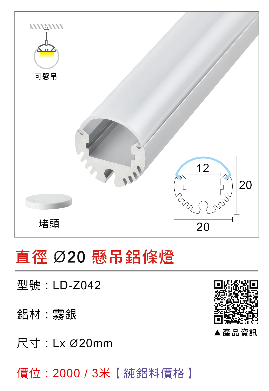 尺寸 : Lx Ø20mm