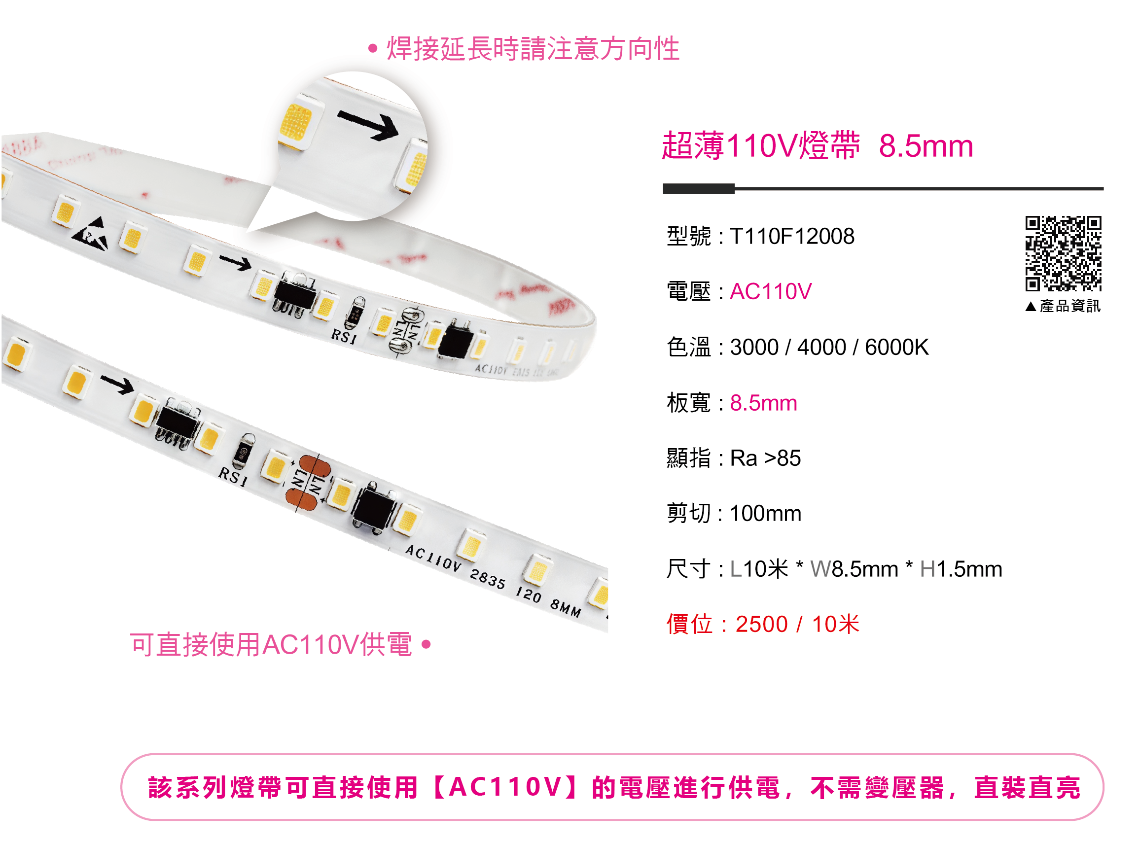 超薄110V燈帶 8.5mm|燈帶